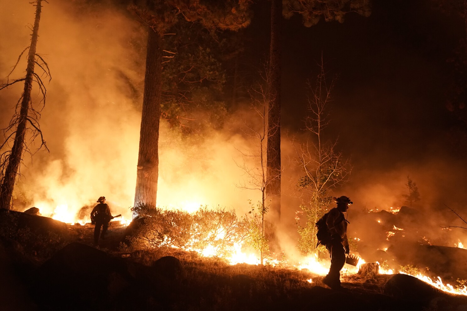 Forest Service workers and others battle the Caldor Fire outside of Meyers. Andrew Nixon CapRadio Heres the latest information on the fire evacuations damages and closures. Image 5 Satellite view of the active NE edge of the Caldor Fire near Kirkwood early on Sept.